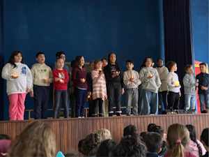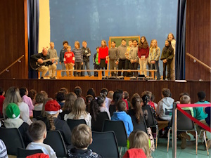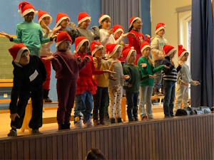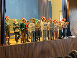 Weihnachtsfeier in der Aula am letzten Schultag mit wunderschön gesungenen Liedern.
