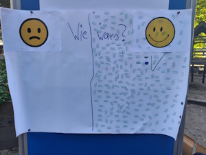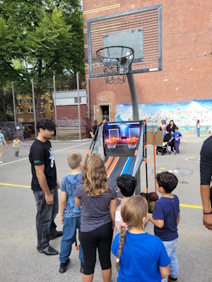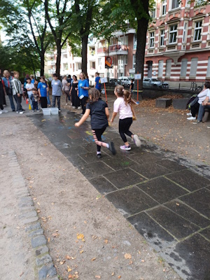 Am vergangenen Freitag gab es ein wunderbares, großes Bewegungsfest an der Gerichtsschule. Es wurden viele sportliche Aktionen angeboten, angefangen von Capoeira mit Eco, Seilspringen, Slackline, Wasser tragen, Basketball-Körbe werfen mit den Witten Baskets, Trampolin-Springen und vieles mehr. Die Kinder erhielten eine Laufkarte und konnten sich nach erfolgreicher Teilnahme an den Aktionen am Stand der Wohnungsgenossenschaft Witten Mitte e.G. ein kleines Geschenk abholen. Weiterhin gab es für jedes Kind einen kostenlosen Wrap und ein Getränk. Die Wraps wurden zuvor vom Kollegium der Gerichtsschule in einer konzertierten Aktion vorbereitet. Auch Auf- und Abbau wurde von einem großartigen Schul-Team aus Kollegium und OGS sowie Förderverein und Eltern gemeinsam vorgenommen. Die Fotos sprechen für sich - es war ein tolles Fest.