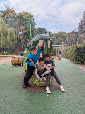 Wie gesagt, wir hatten einen Ausflug in den Tierpark Bochum geplant. Doch wir wollten nicht nur zum Tierpark fahren, sondern wir wollten auch in der Schule übernachten. Wir waren richtig aufgeregt. Zunächst sind wir mit der Parallelklasse zum Hauptbahnhof gegangen. Wir wollten aber nicht mit dem Zug fahren, sondern mit dem SEV – übersetzt Schienenersatzverkehr. Die Fahrt war sehr spannend. Am Bochumer Hauptbahnhof sind wir in einen Bus umgestiegen. Im Tierpark haben wir viele Tiere gesehen. Wir haben auch eine Rallye gemacht. Das war schwer. Mit der U-Bahn sind wir zurückgefahren, eher könnte man „gerattert“ sagen. Am Bochumer Hauptbahnhof sind wir in den SEV umgestiegen.