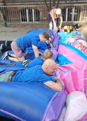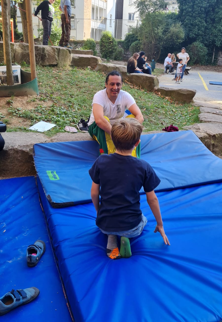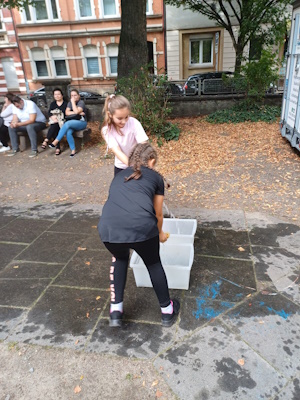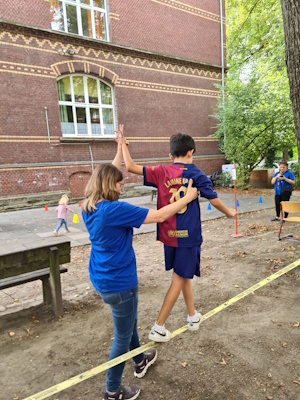 Am vergangenen Freitag gab es ein wunderbares, großes Bewegungsfest an der Gerichtsschule. Es wurden viele sportliche Aktionen angeboten, angefangen von Capoeira mit Eco, Seilspringen, Slackline, Wasser tragen, Basketball-Körbe werfen mit den Witten Baskets, Trampolin-Springen und vieles mehr. Die Kinder erhielten eine Laufkarte und konnten sich nach erfolgreicher Teilnahme an den Aktionen am Stand der Wohnungsgenossenschaft Witten Mitte e.G. ein kleines Geschenk abholen. Weiterhin gab es für jedes Kind einen kostenlosen Wrap und ein Getränk. Die Wraps wurden zuvor vom Kollegium der Gerichtsschule in einer konzertierten Aktion vorbereitet. Auch Auf- und Abbau wurde von einem großartigen Schul-Team aus Kollegium und OGS sowie Förderverein und Eltern gemeinsam vorgenommen. Die Fotos sprechen für sich - es war ein tolles Fest.